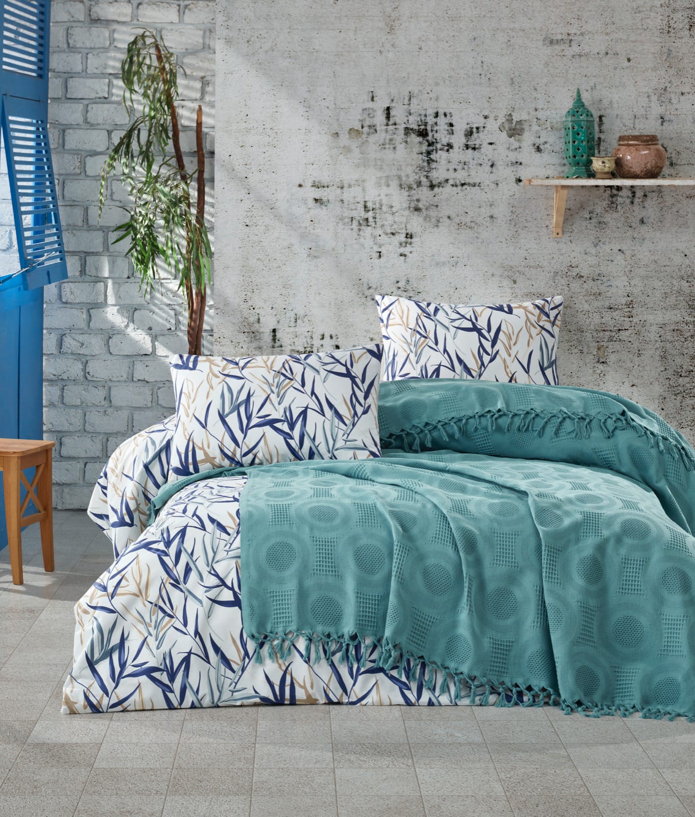 ორსაწოლიანი თეთრეული+ პიკე (100% კოტონი) — კოდი: Pik72 Polka Petrol